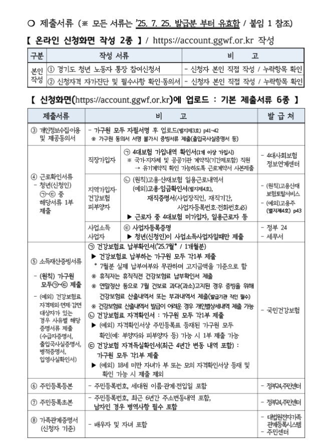 경기도 청년 노동자 통장 제출서류