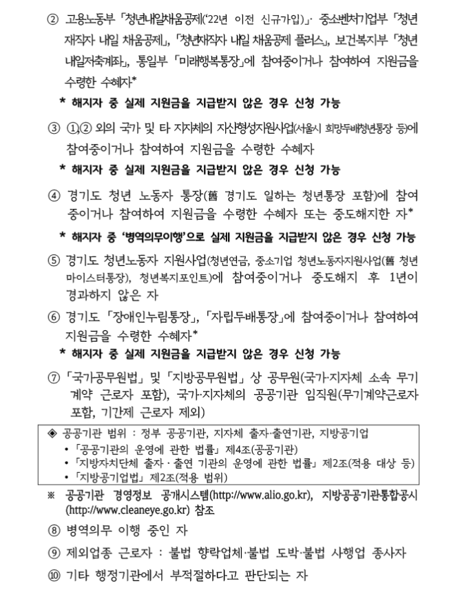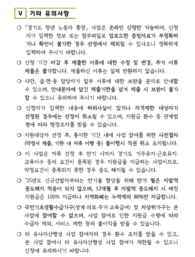 경기도 청년 노동자 통장 유의사항