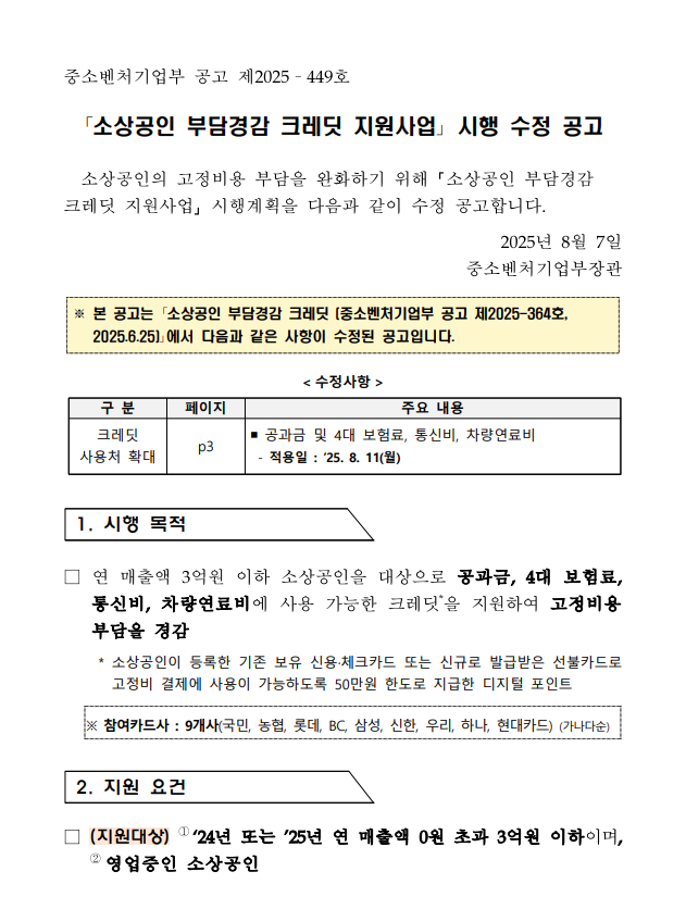 이런 문제점을 개선하고자, 2025년 8월 11일부터 부담경감 크레디트의 사용처가 대폭 확대됩니다!