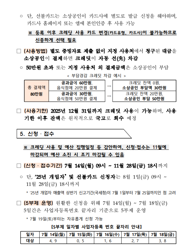 - 지원대상: 2025년 5월 1일 이전 개업, 연매출 3억 이하, 정책자금 제외업종이 아닌 소상공인