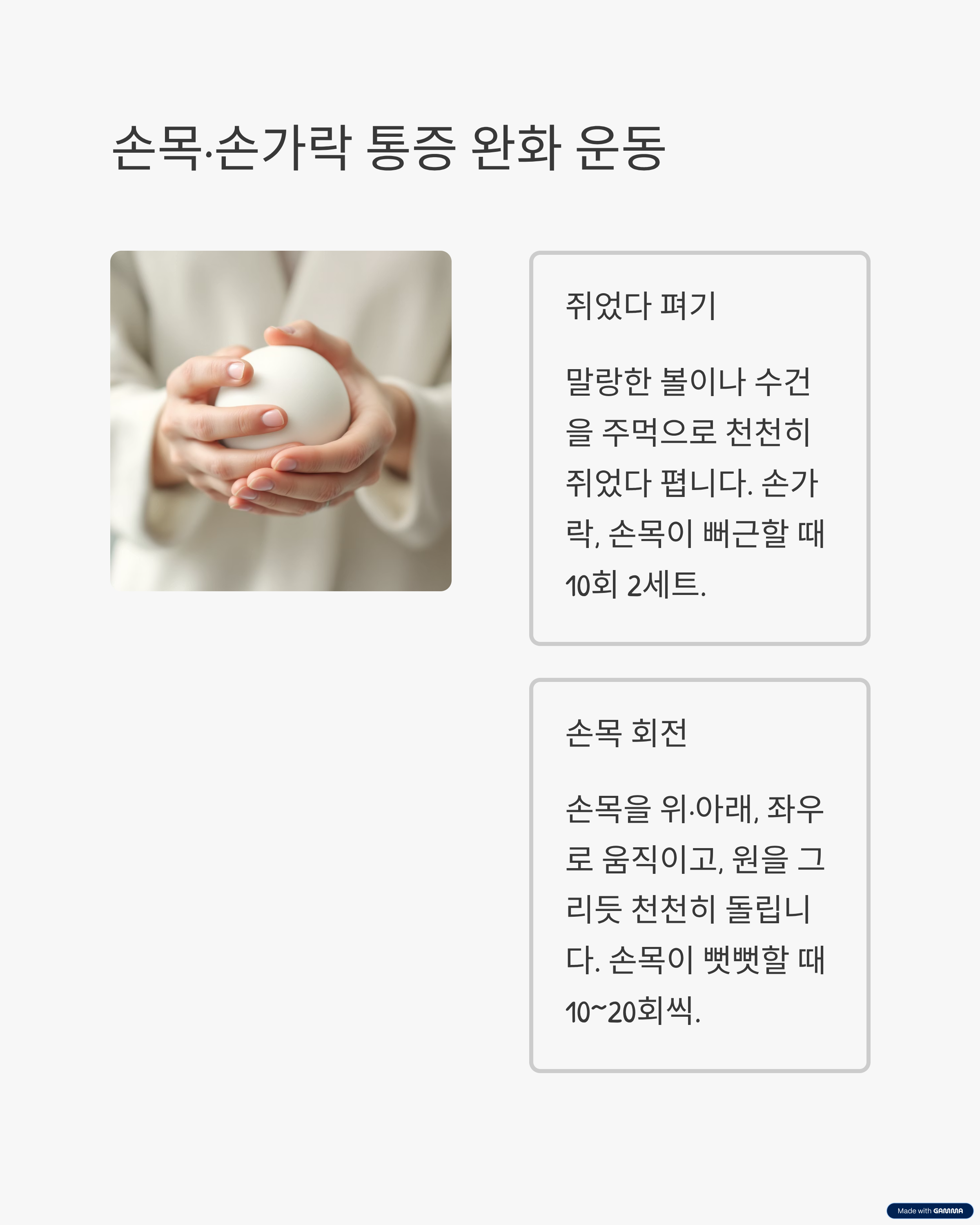 - 손가락, 손목이 뻐근할 때 10회 2세트 반복